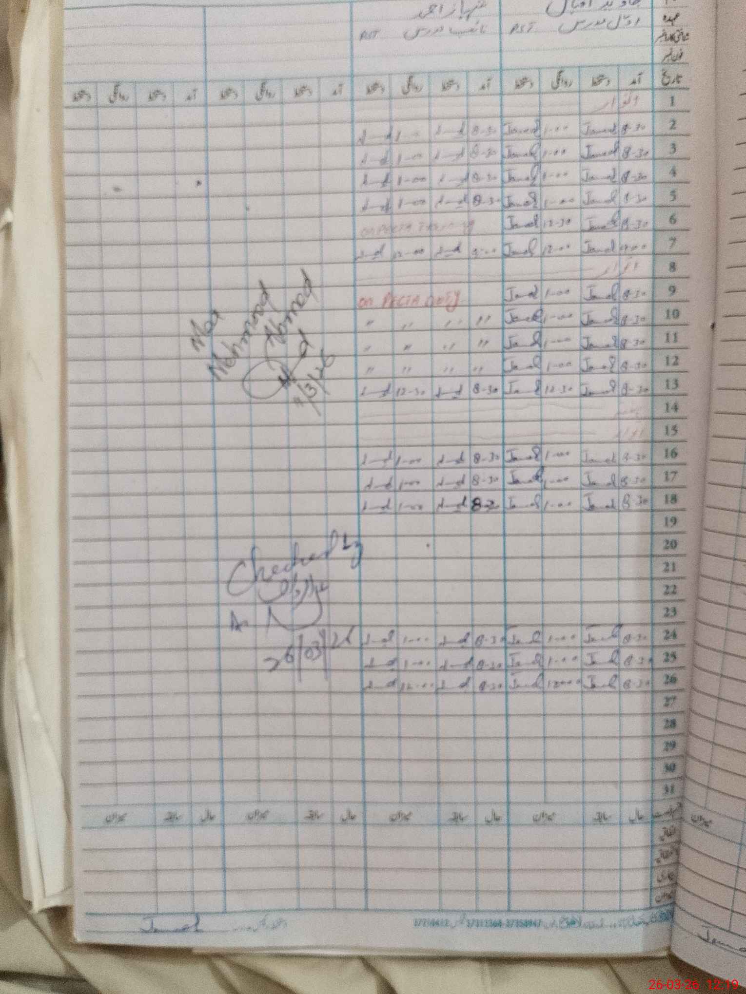 | CNIC | Full Name | Designation | R/C | Absence during last cal. month |