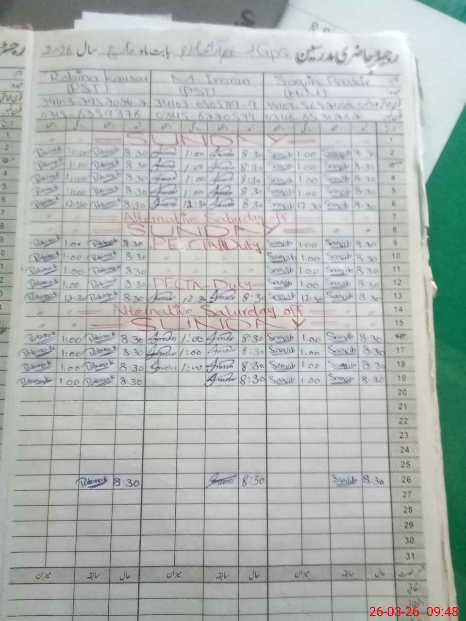 | Name: SA**** BA**** Designation: (School Headmaster's/Headmistress's) PST Phone/Cell Number: 03**** |