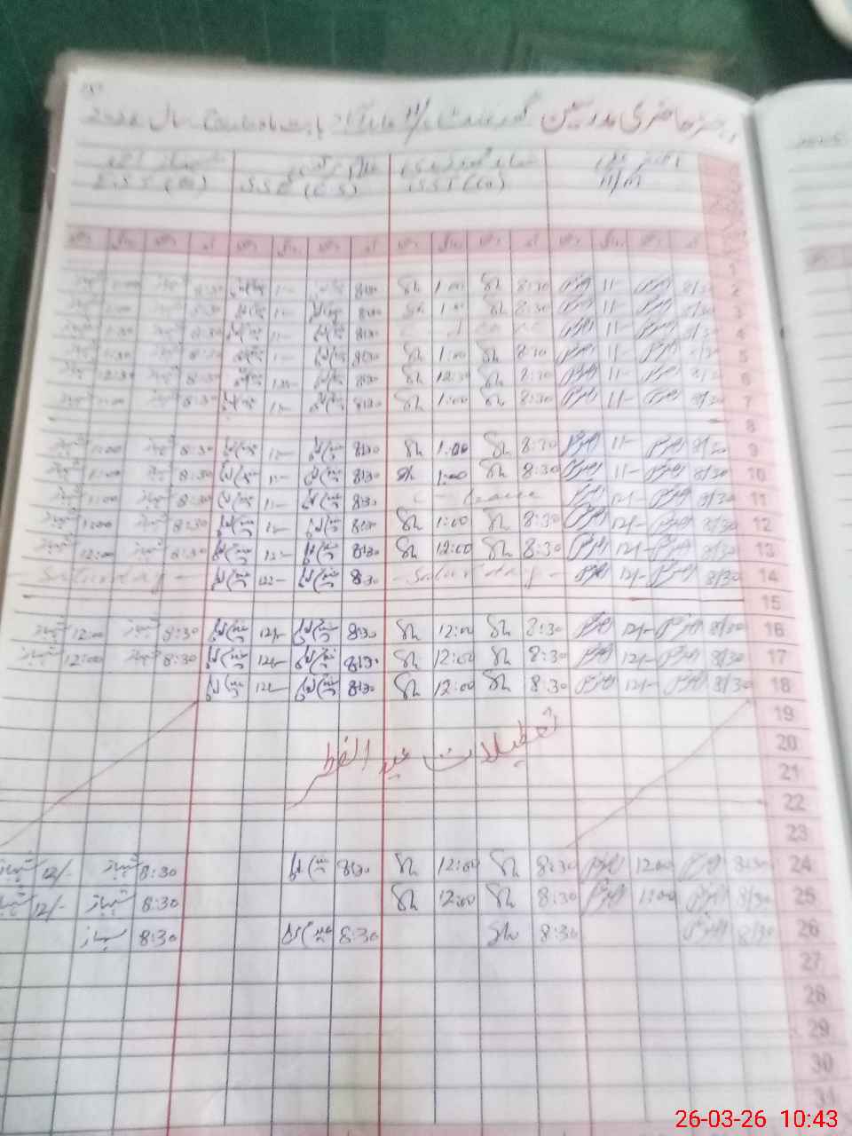 | CNIC | Full Name | Designation | R/C | Absence During Last Calender Month |