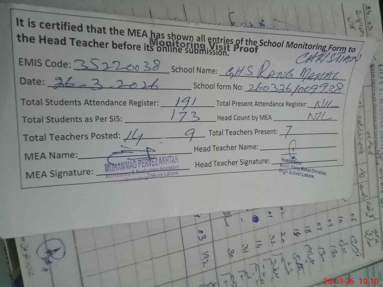 | EMIS Code: 35220038 | Name of School: GHS RANG MAHAL CHRISTIAN | |||