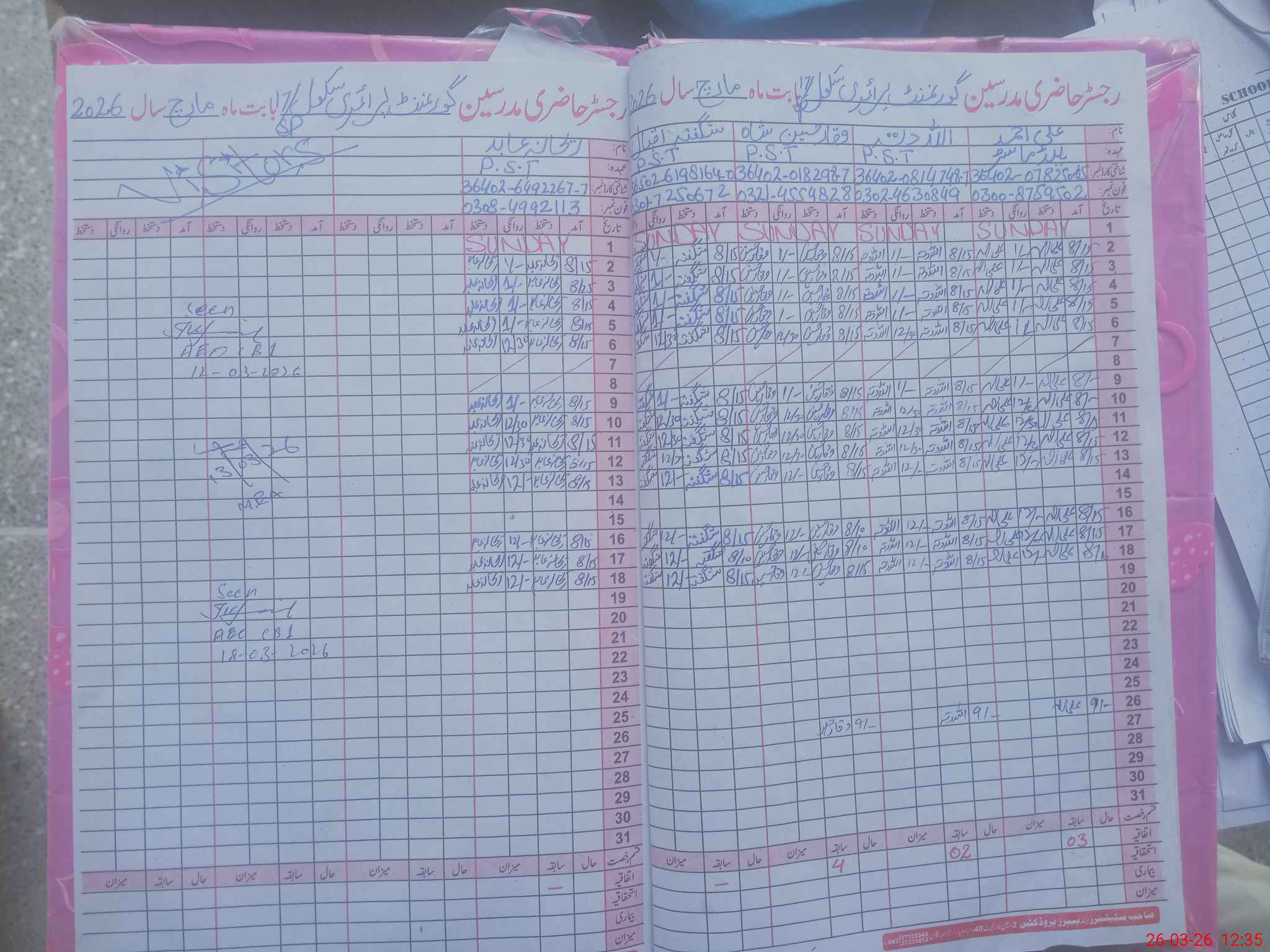 | Name: Al**** Ah**** Designation: (School Headmaster's/Headmistress's) PST Phone/Cell Number: 03**** |