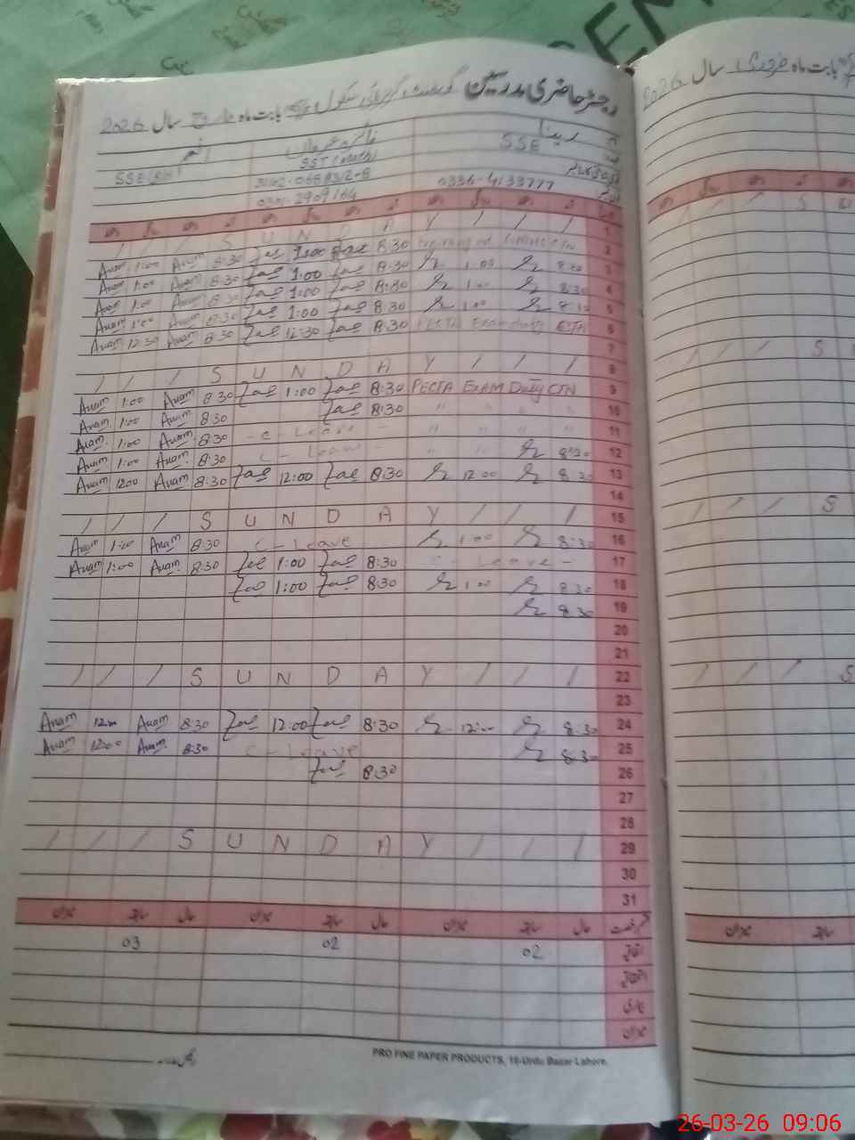 | 31**** | Mu**** Ra**** | N Qasid | Regular | 0 | 0 | 0 | 0 | 0 | 0 | 0 | 0 | 0 | Absent (Un-Authorized) |
