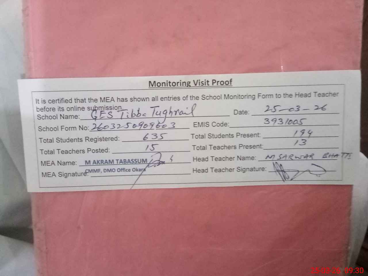 | EMIS Code: 39310055 | Name of School: GES TIBBA TUGHRAIL | |||
