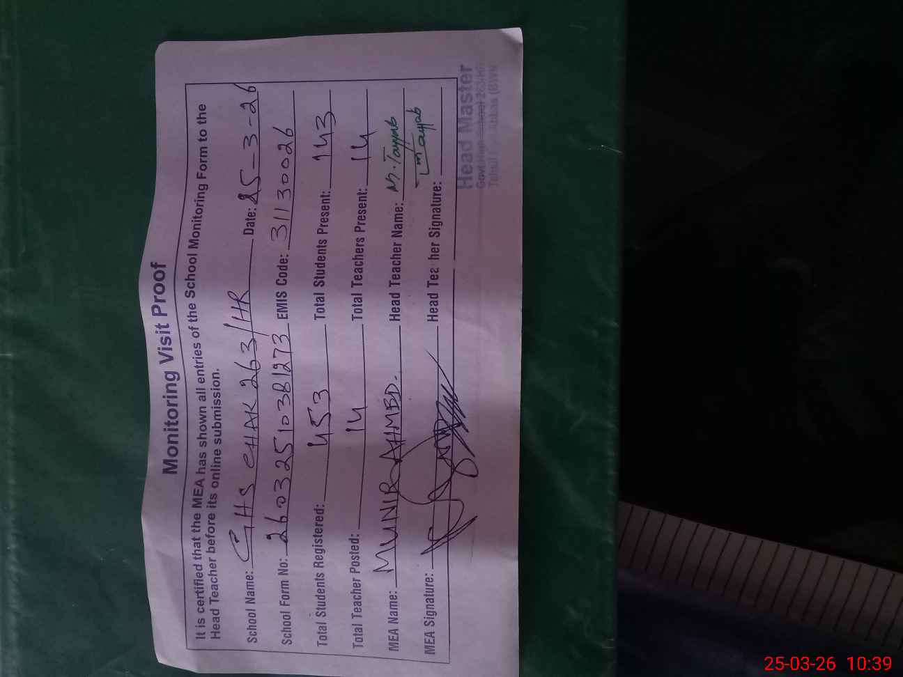 | EMIS Code: 31130026 | Name of School: GHS 263/HR | |||