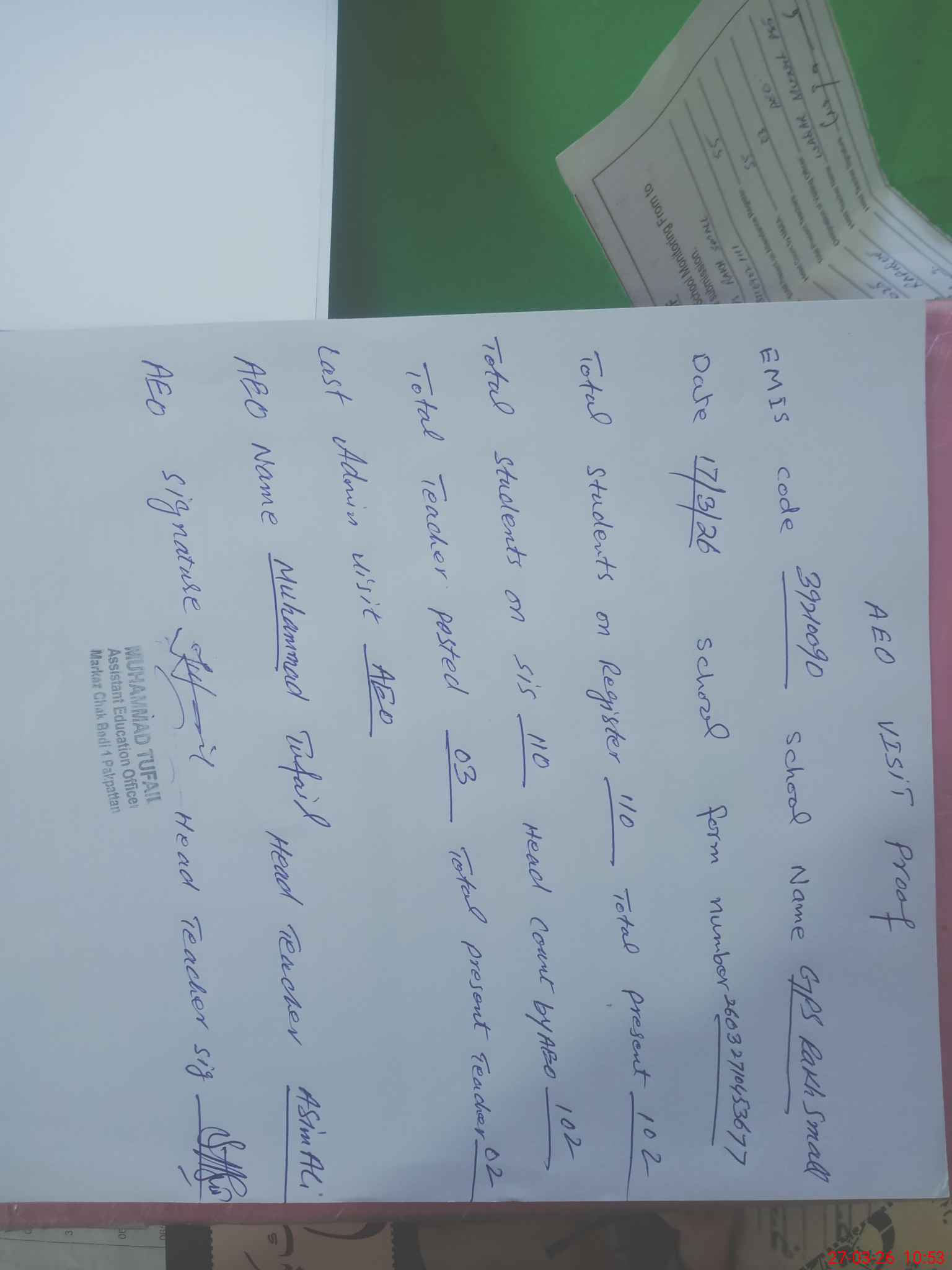 | Name: As**** Al**** Designation: (School Headmaster's/Headmistress's) PST Phone/Cell Number: 03**** |