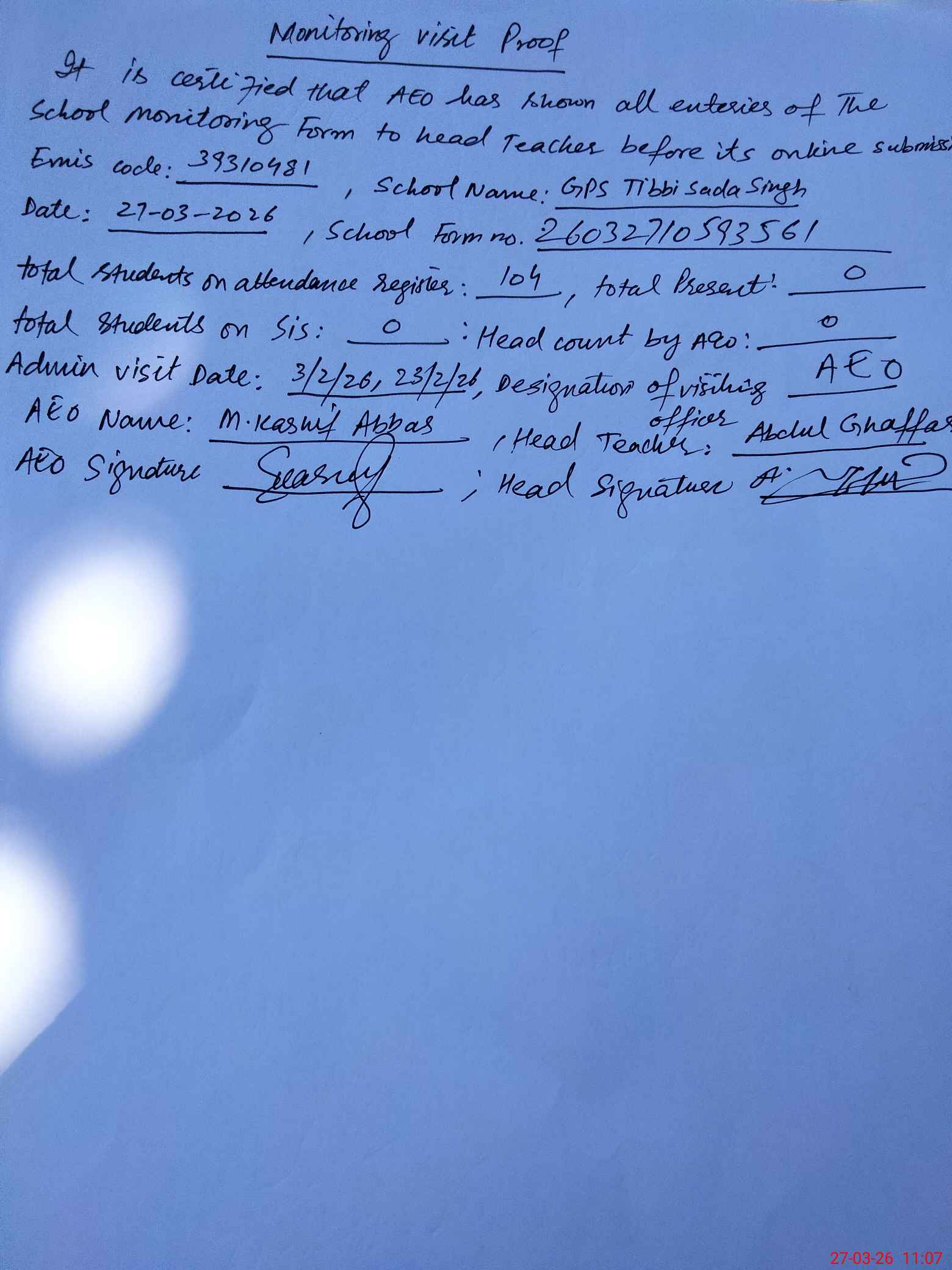| EMIS Code: 39310481 | Name of School: GPS TIBBI SADA SINGH | |||