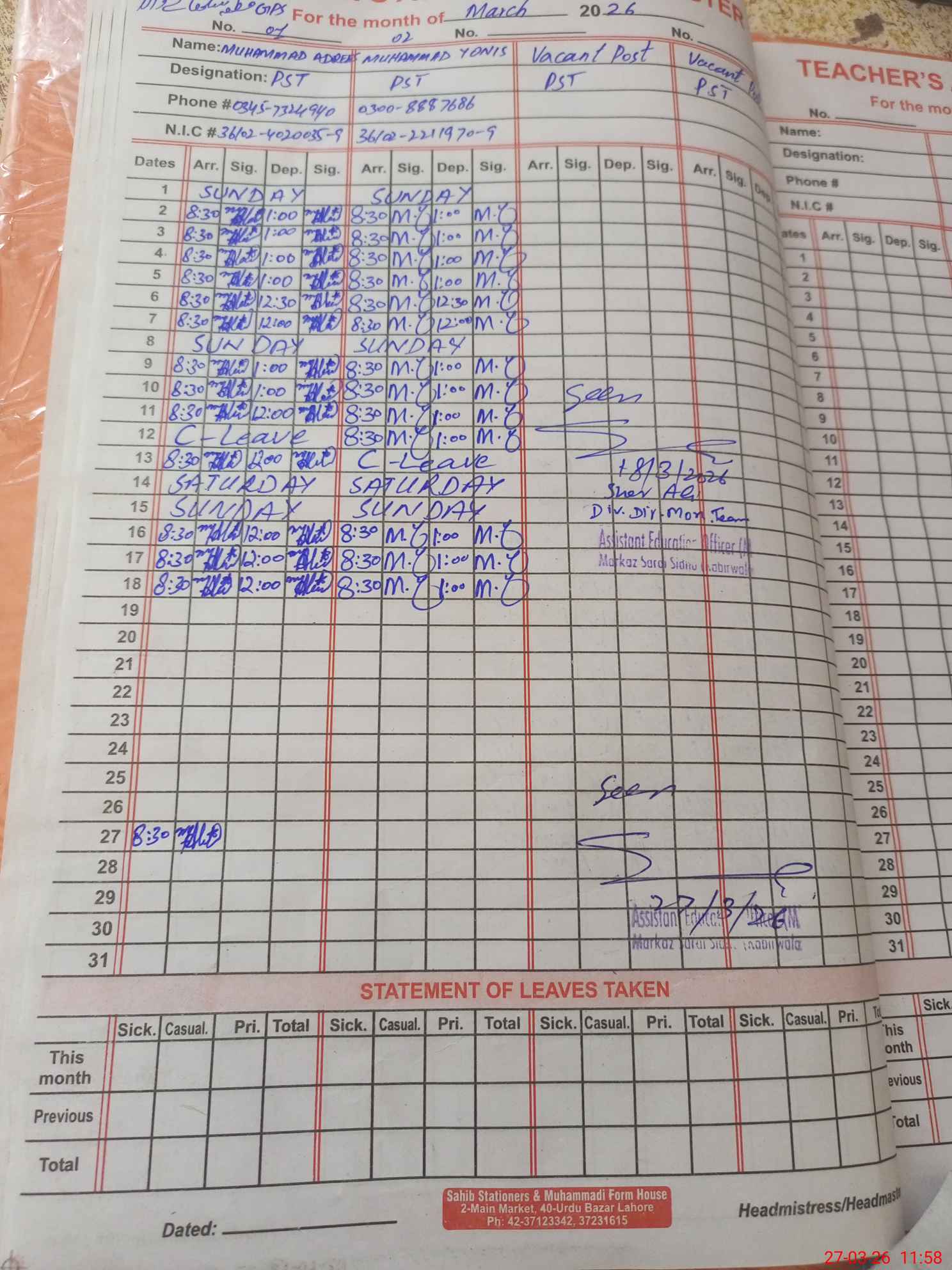| Name: MId**** Designation: (School Headmaster's/Headmistress's) PST Phone/Cell Number: 03**** |