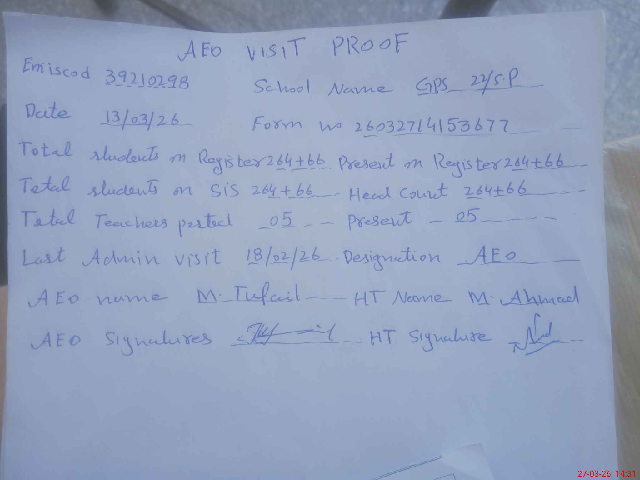 | EMIS Code: 39210298 | Name of School: GPS 22 SP | |||