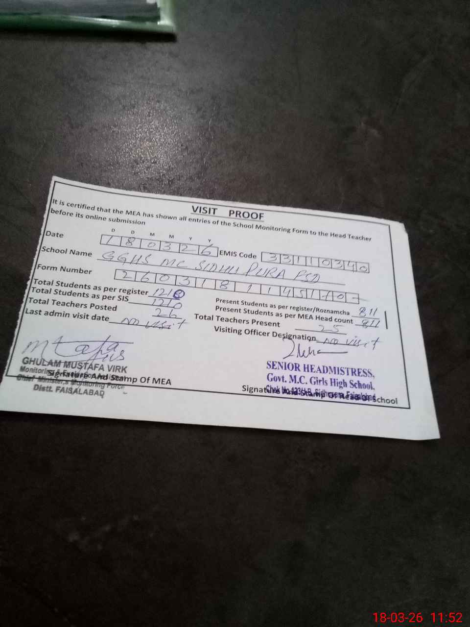 | EMIS Code: 33110340 | Name of School: GGHS MC SIDHO PURA FAISALABAD | |||