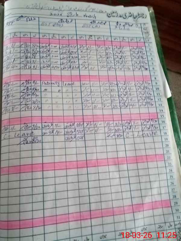 | CNIC | Full Name | Designation | R/C | Absence During Last Calender Month |