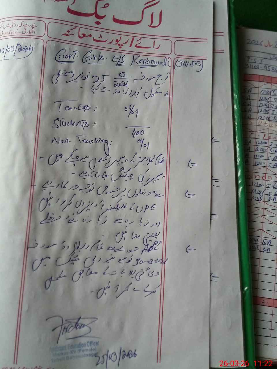 | Certified that this School was Inspected by the Undersigned MEA/DMO Today and the Information Stated Above is as Per Record. | |||||