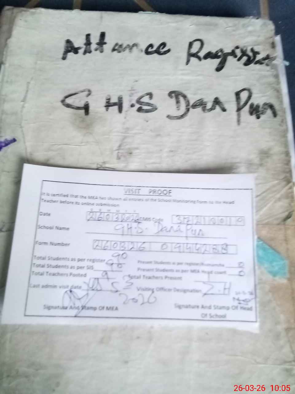 | Attendance Register | Head Teacher | MEA with School | Visit Proof |
