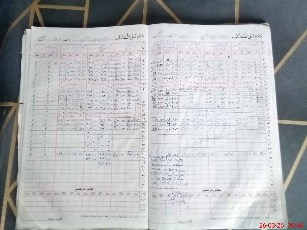 | CNIC | Full Name | Designation | R/C | Absence During Last Calender Month |