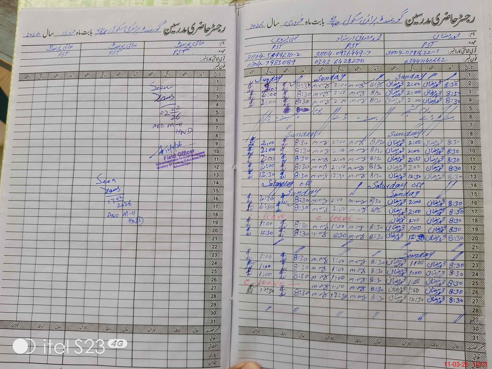 | Name: MU**** RA**** Designation: (School Headmaster's/Headmistress's) PST Phone/Cell Number: 03**** |
