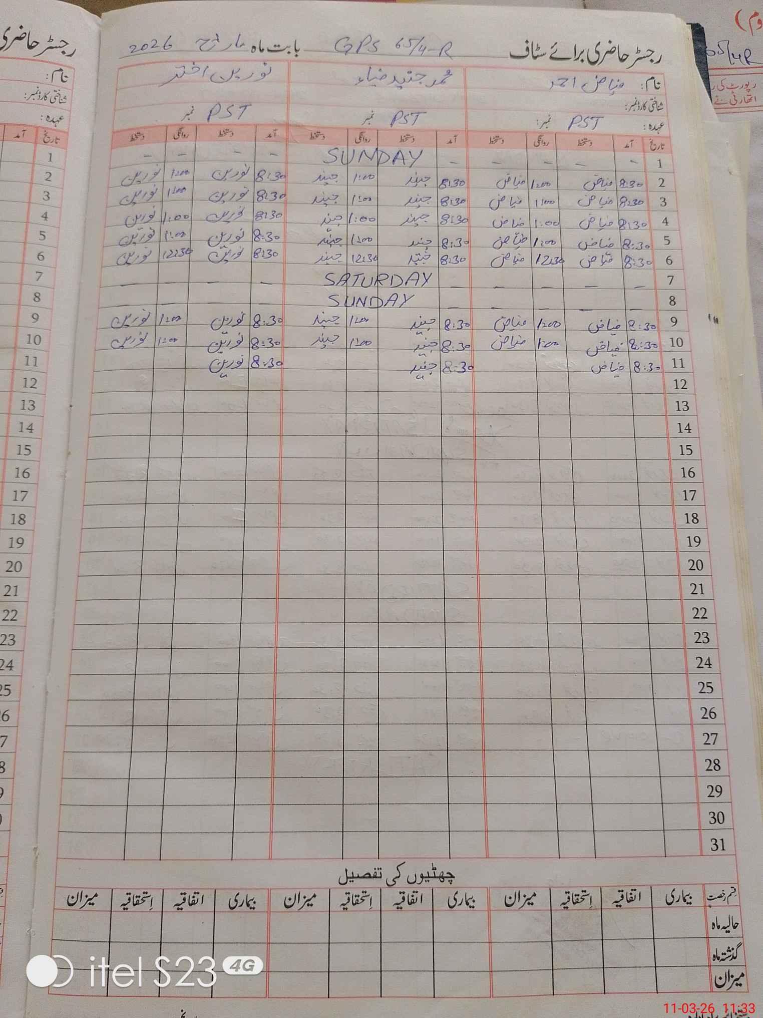 | CNIC | Full Name | Designation | R/C | Absence During Last Calender Month |
