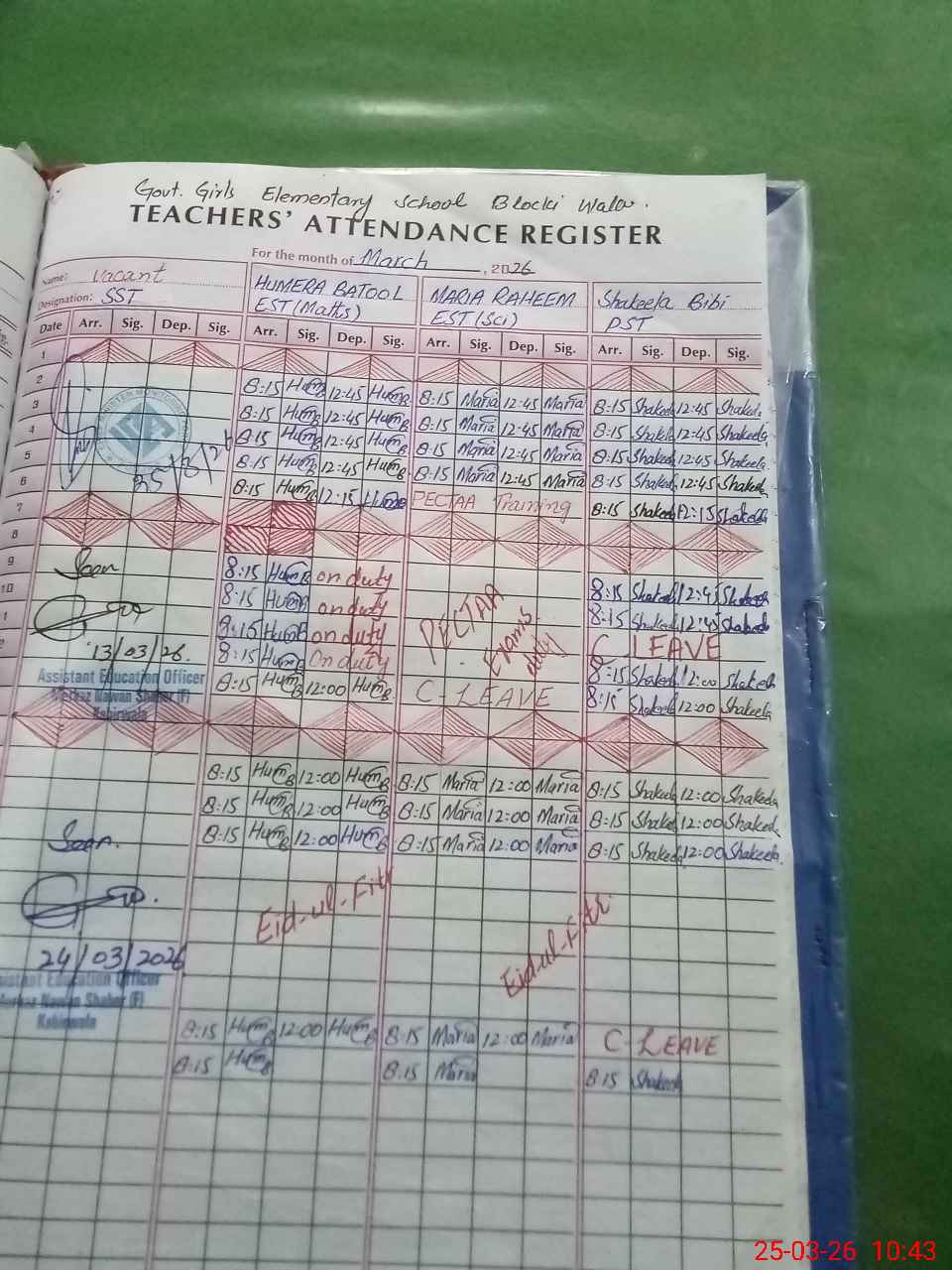 | Remarks (Use Separate Page if Required): primary classes exam off | |||||