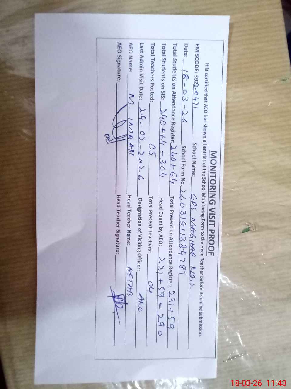 | EMIS Code: 39220471 | Name of School: GPS MAGHAR NO. 2 P/O MARI HAZARA | |||