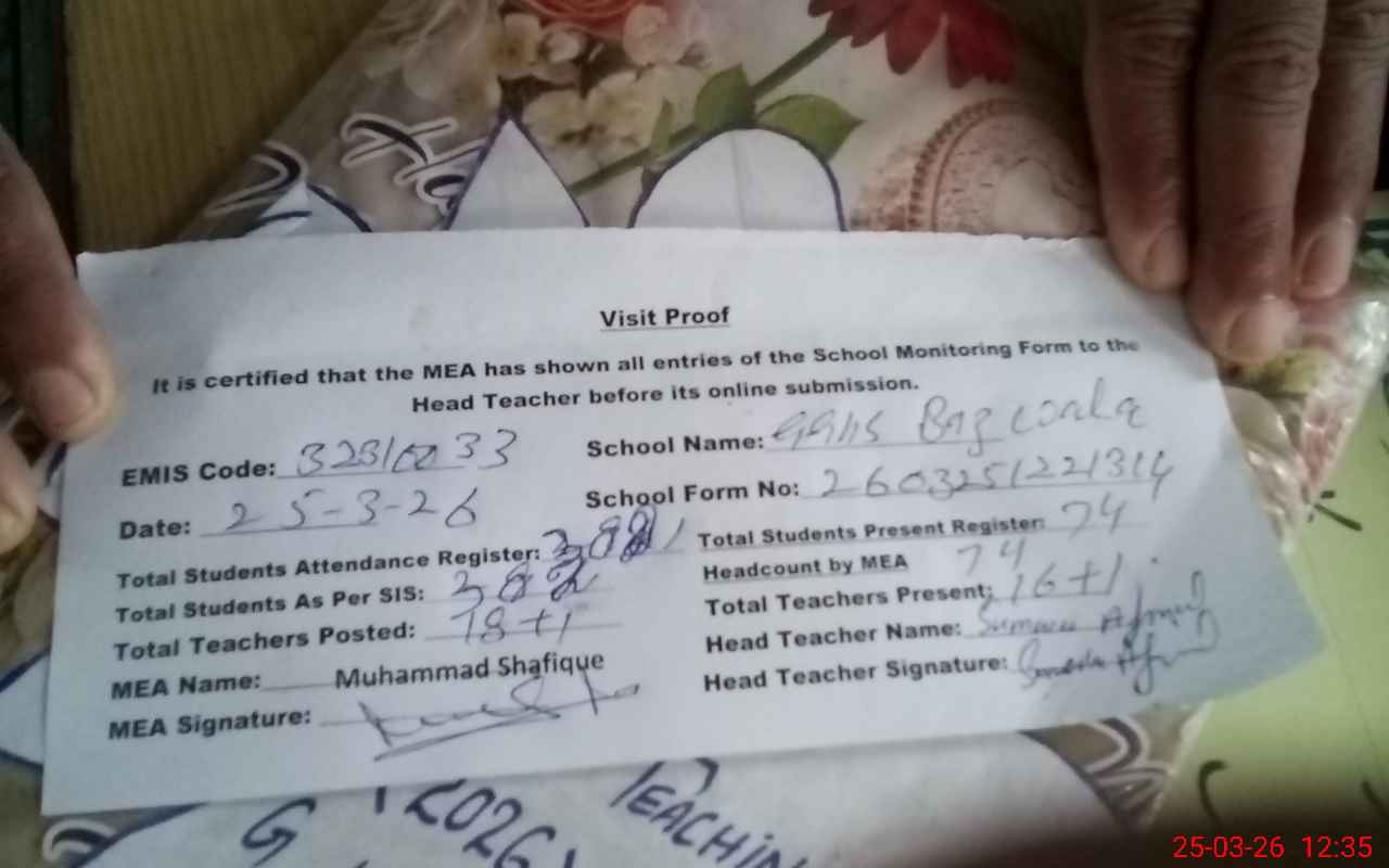 | Attendance Register | Head Teacher | MEA with School | Visit Proof |