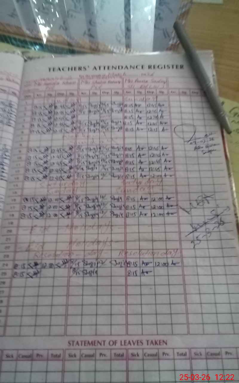 | Name: KH**** FA**** Designation: (School Headmaster's/Headmistress's) S.S.T.(GEN) Phone/Cell Number: 03**** |