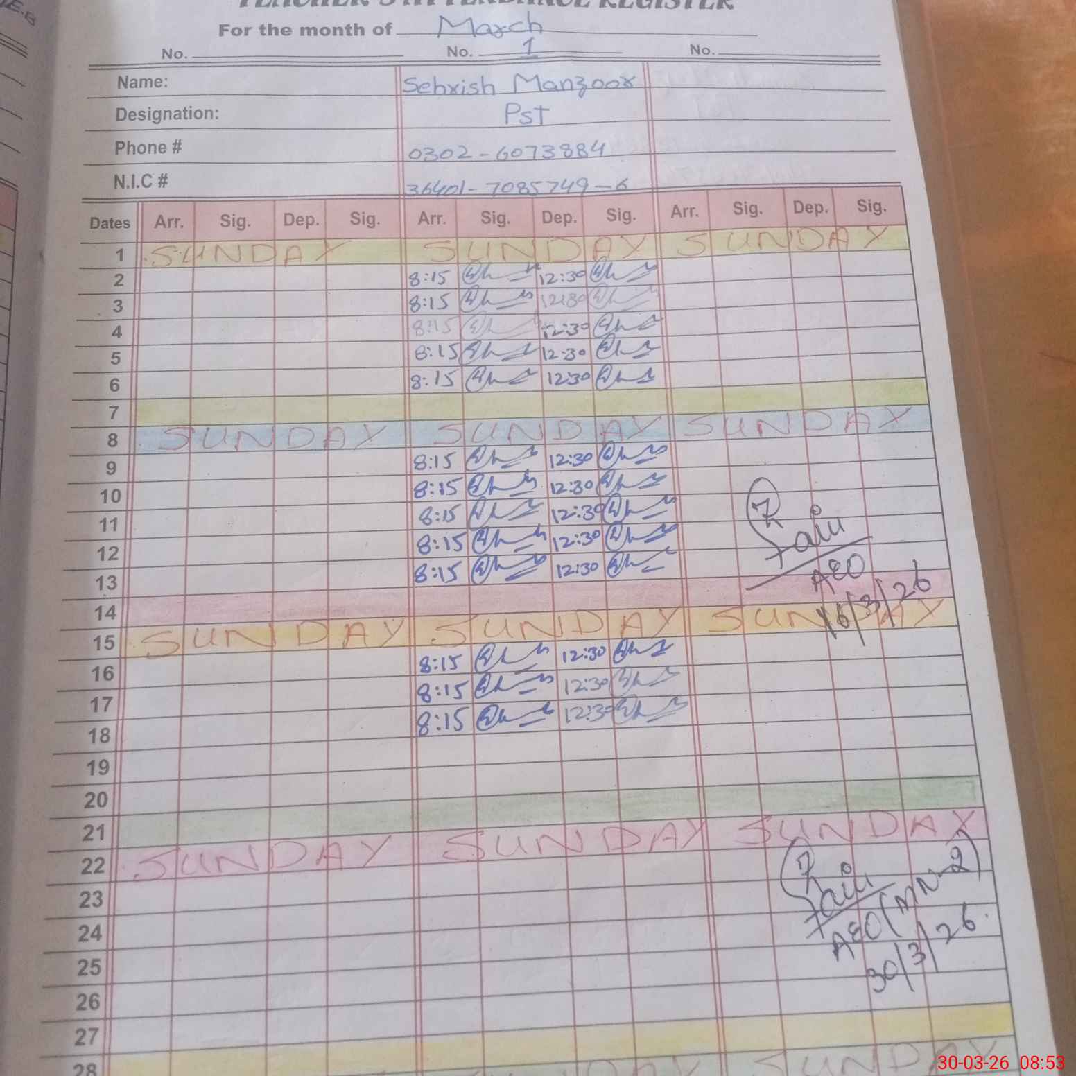 | Name: SE**** MA**** Designation: (School Headmaster's/Headmistress's) PST Phone/Cell Number: 03**** |