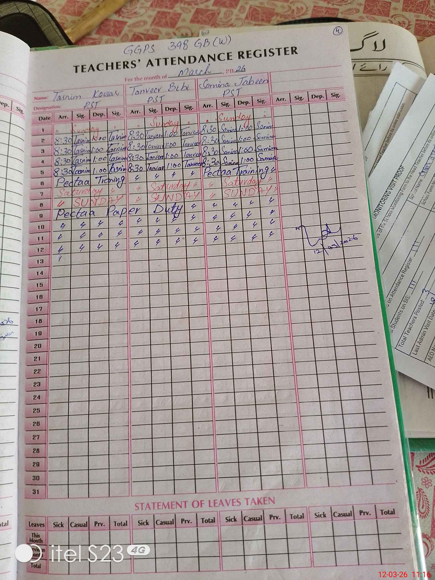 | Name: TA**** KO**** Designation: (School Headmaster's/Headmistress's) PST Phone/Cell Number: 03**** |