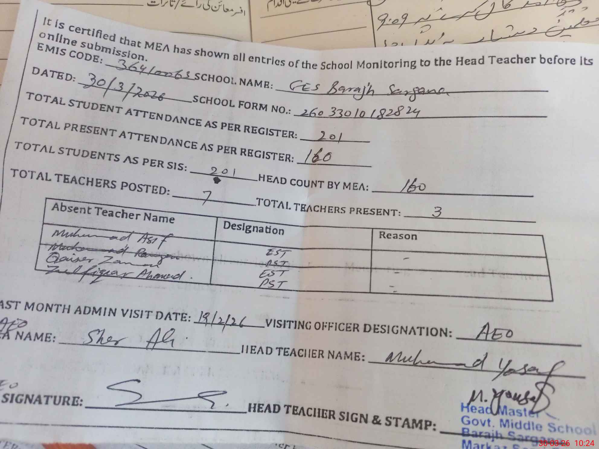| EMIS Code: 36410063 | Name of School: GES BARJH SARGANA, SARAI SIDHU | |||