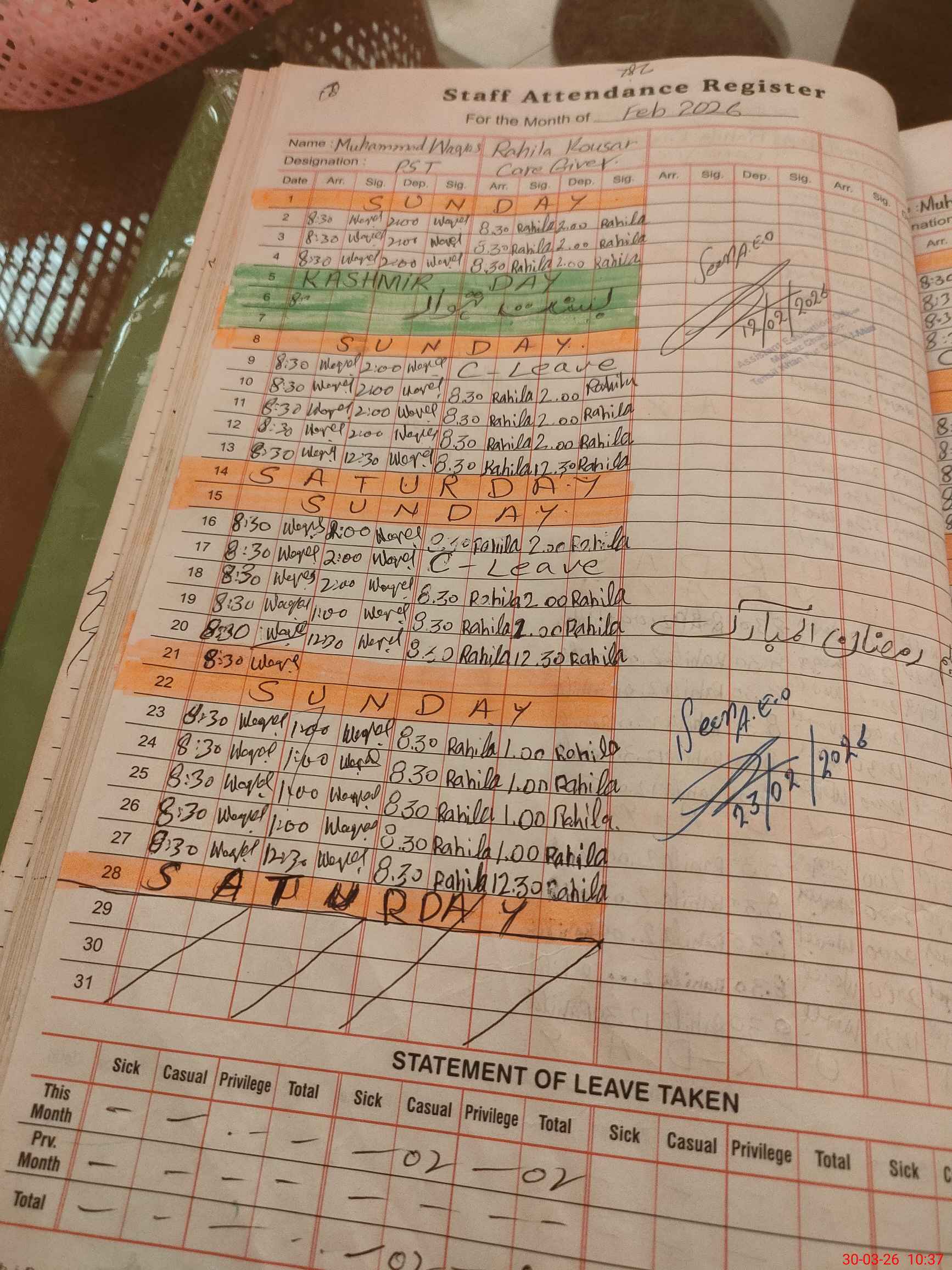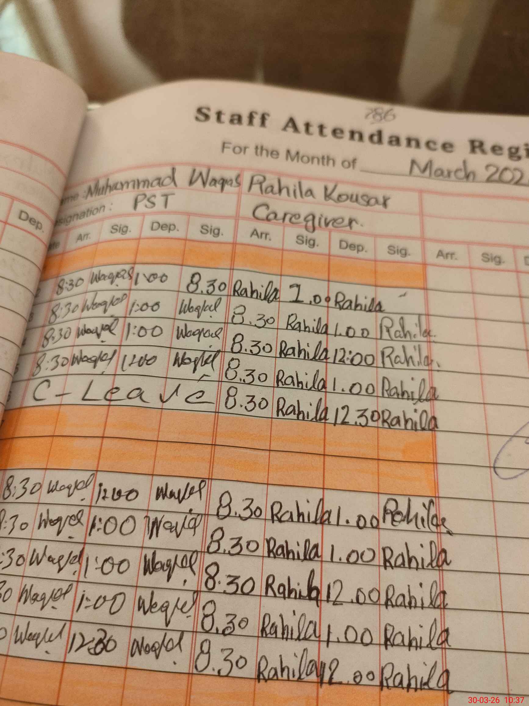| Leave | Duty | Absent | Maternity | Medical | Ex- Pak |