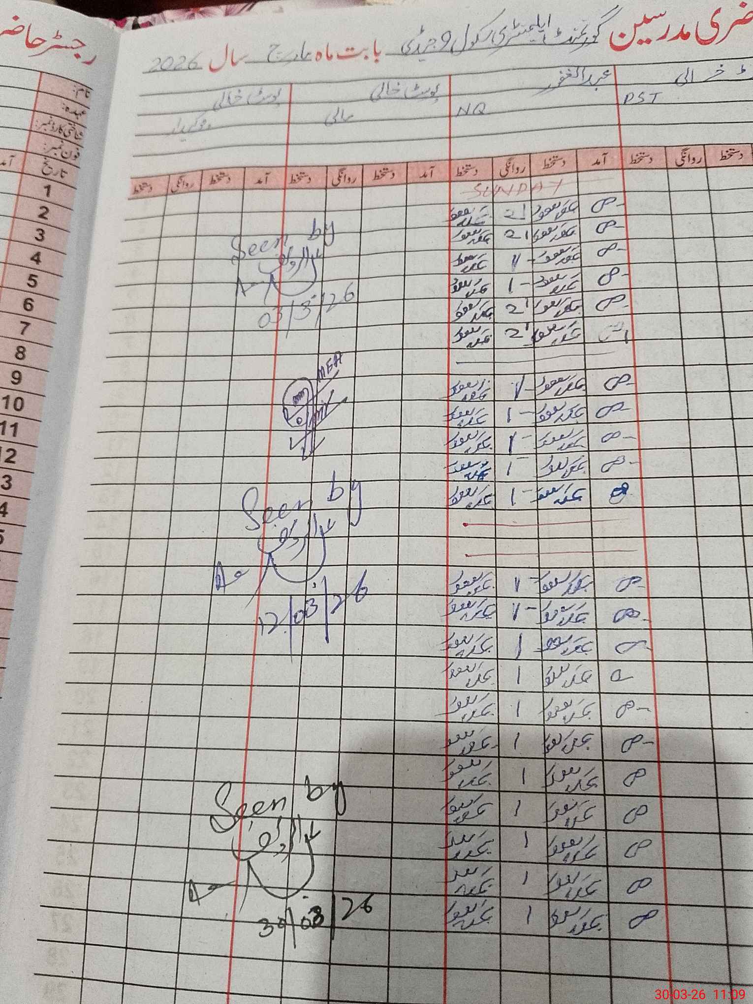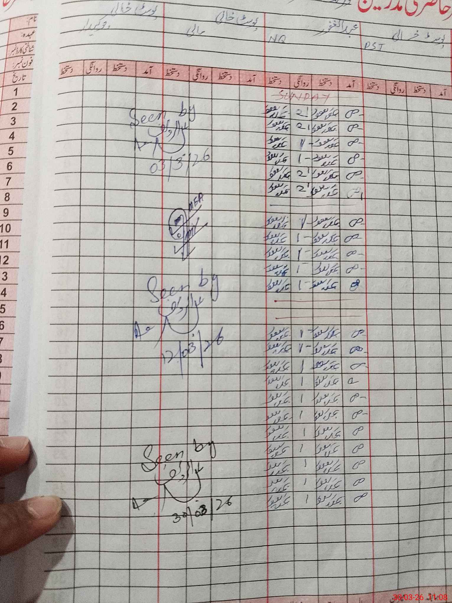 | CNIC | Full Name | Designation | R/C | Absence During Last Calender Month |