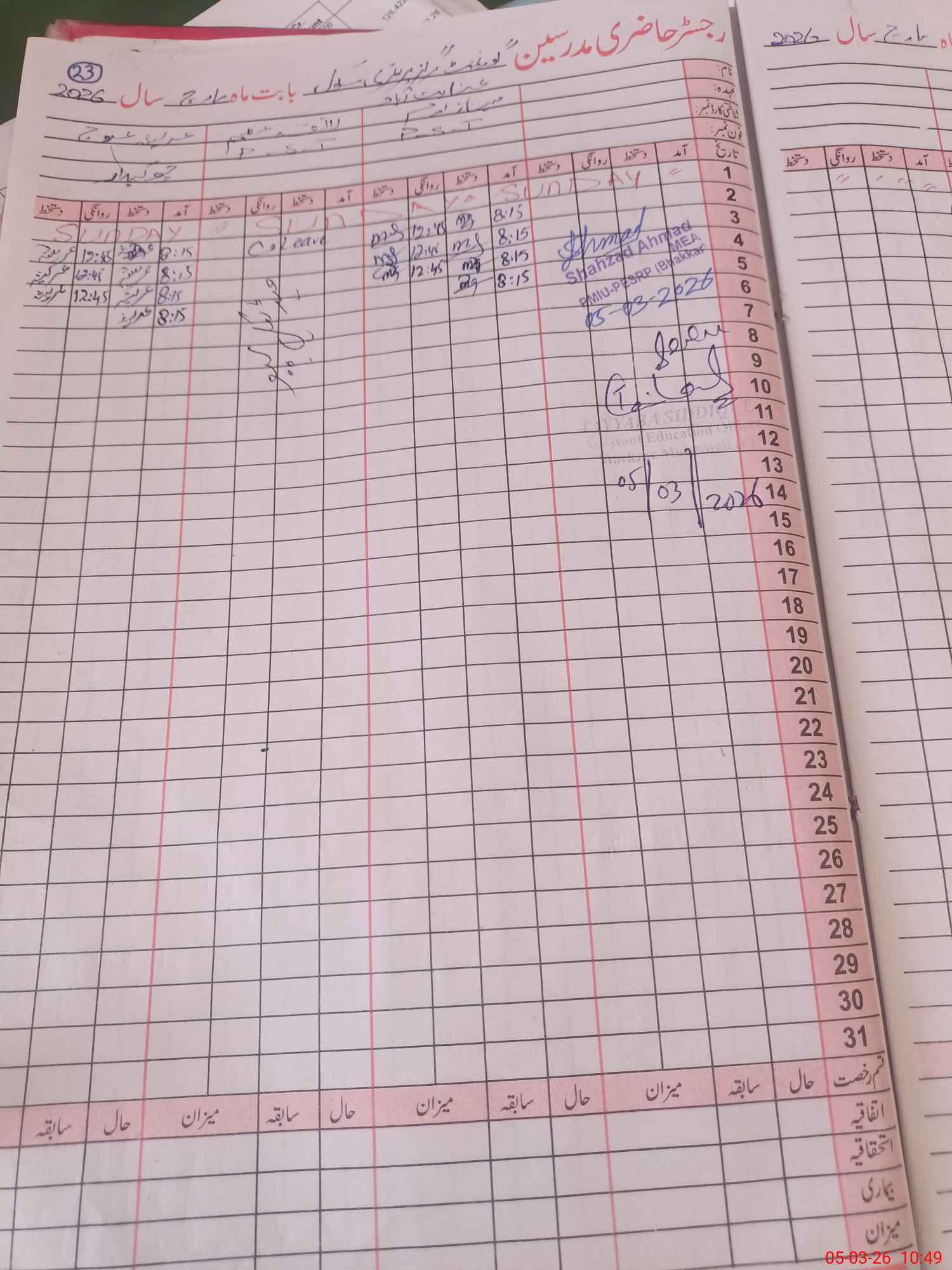 | Attendance Register | Head Teacher | MEA with School | Visit Proof |