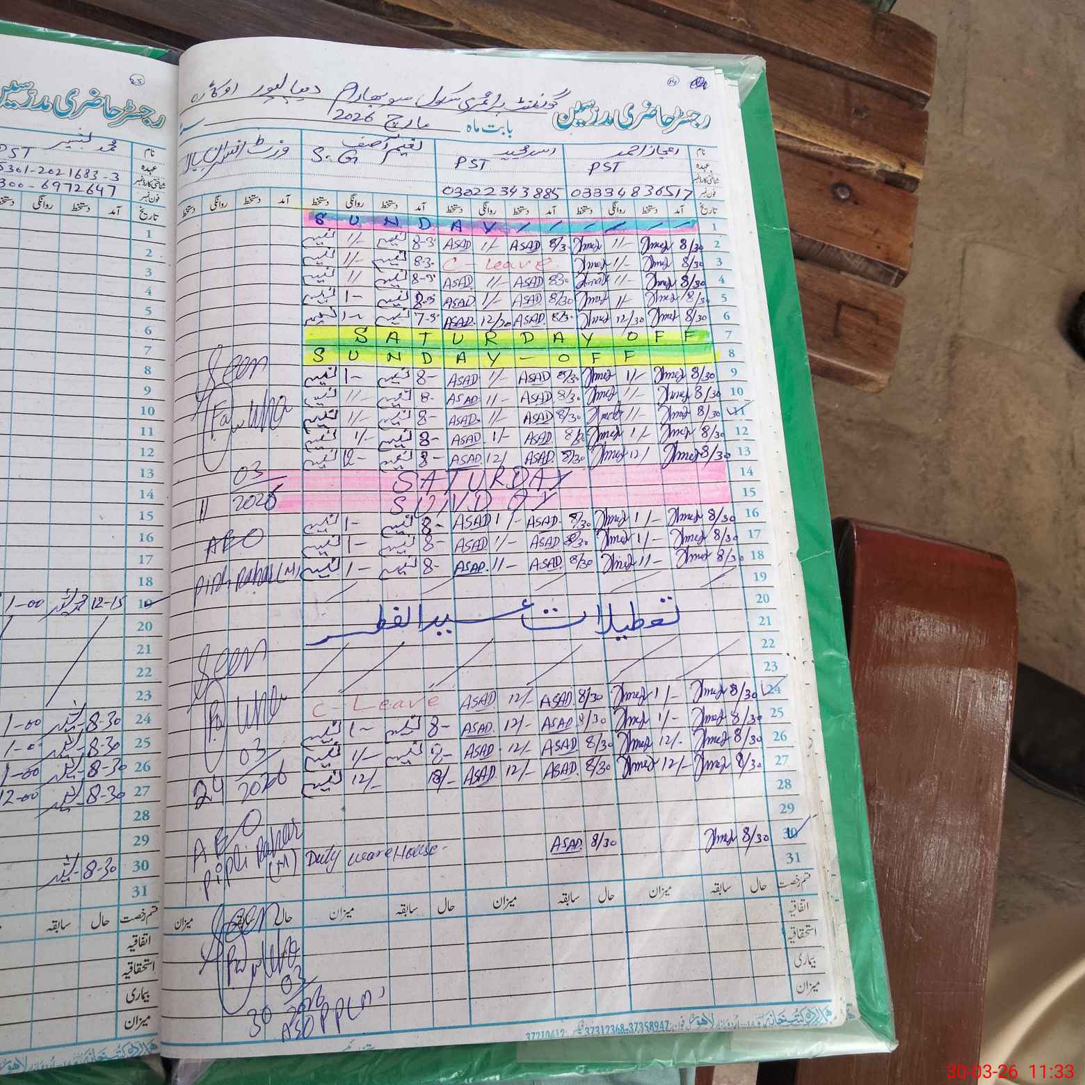 | Name: IS**** AL**** Designation: (School Headmaster's/Headmistress's) PST Phone/Cell Number: 03**** |