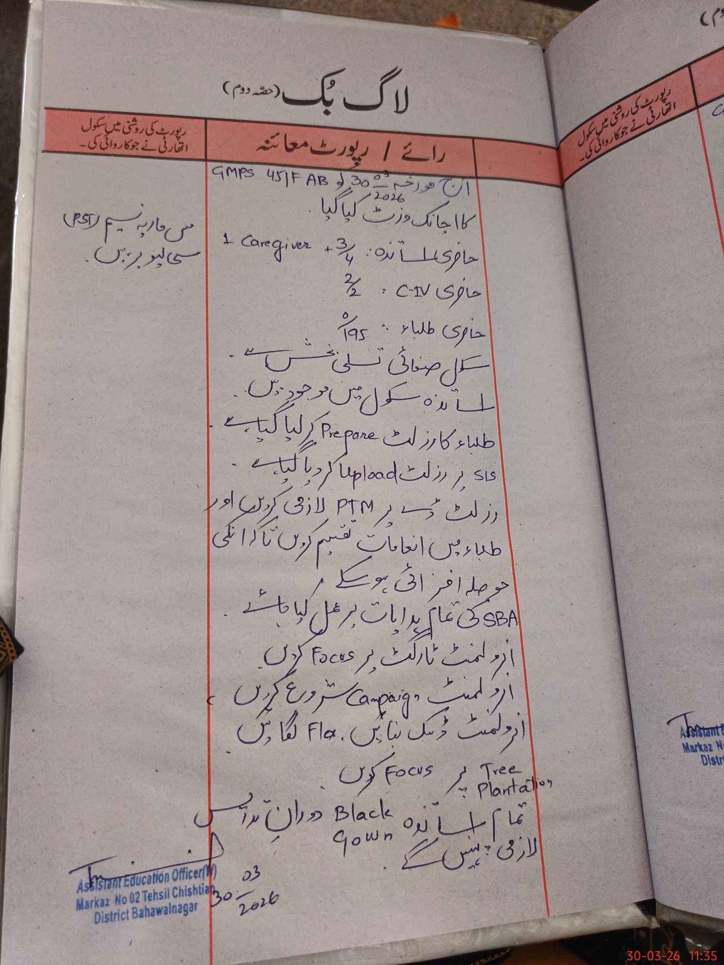| District: BAHAWALNAGAR | Tehsil: CHISHTIAN | Markaz: CTN -II-FEMALE | Level: Primary | |