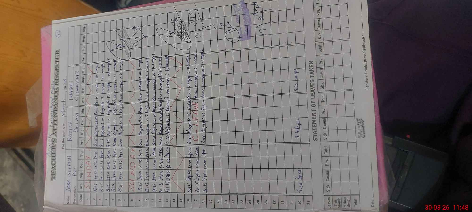 Leave Type | Remarks for Today (Leave,Training, Exam,Absent,Late, Other Duty) |