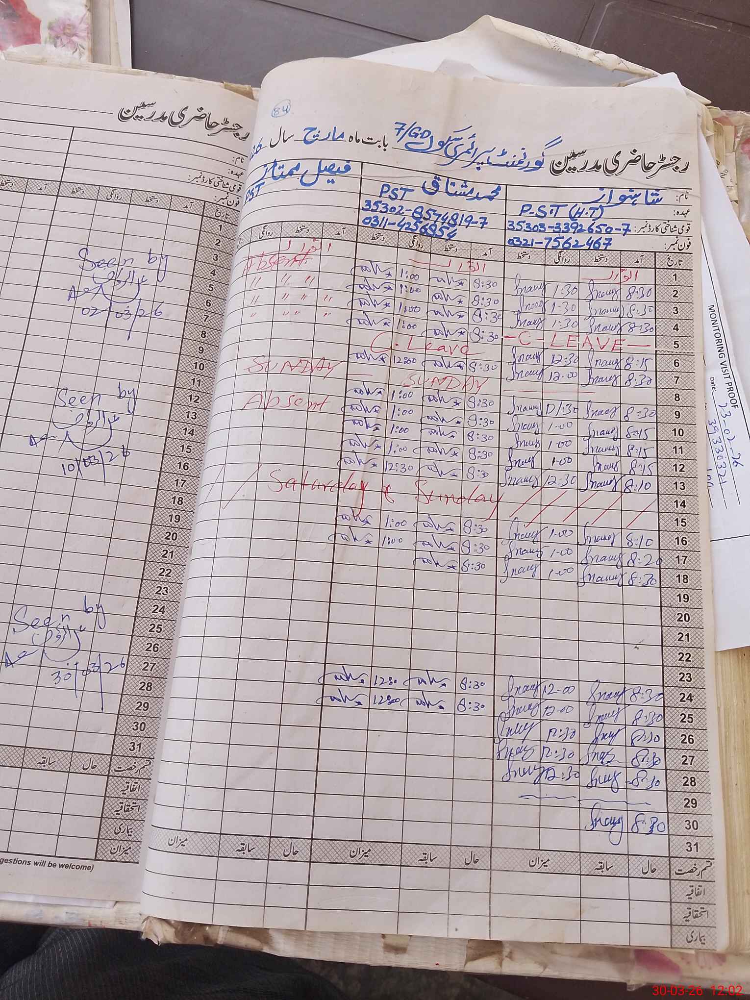 | Name: SH**** Designation: (School Headmaster's/Headmistress's) PST Phone/Cell Number: 03**** |