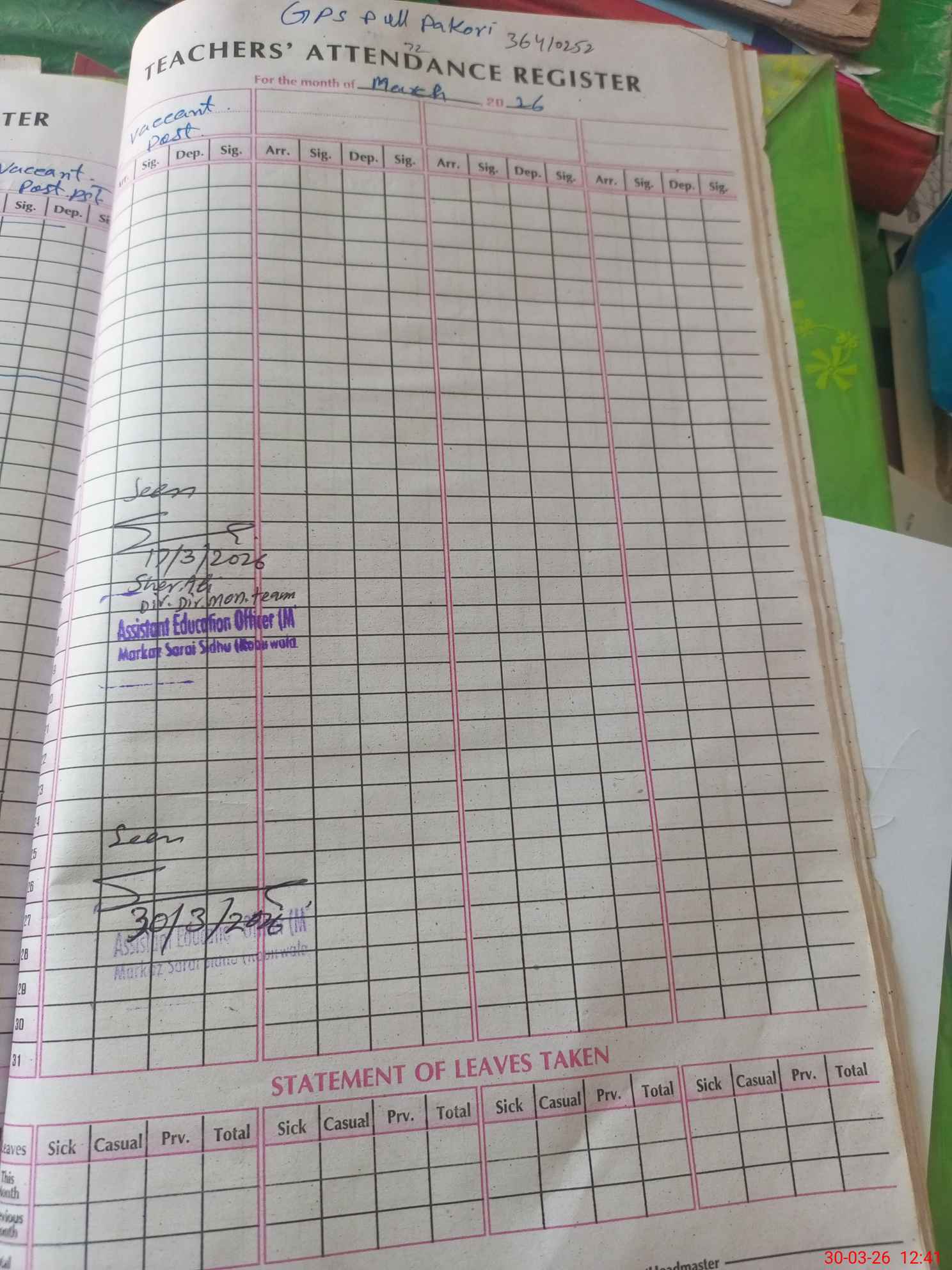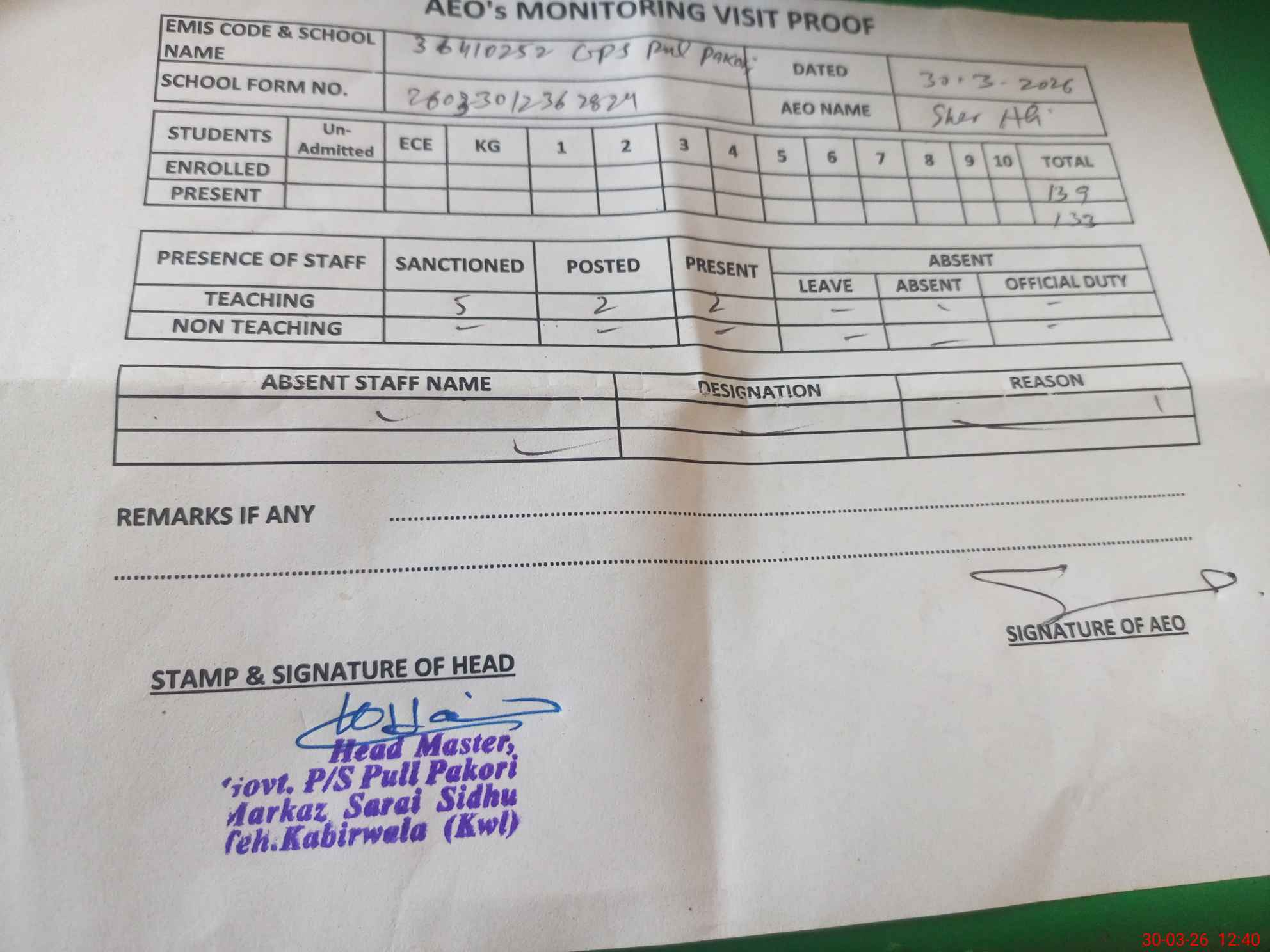 | EMIS Code: 36410252 | Name of School: GPS PUL PAKORI, MOUZA BARAG SARGANA, SARAI SIDHU | |||