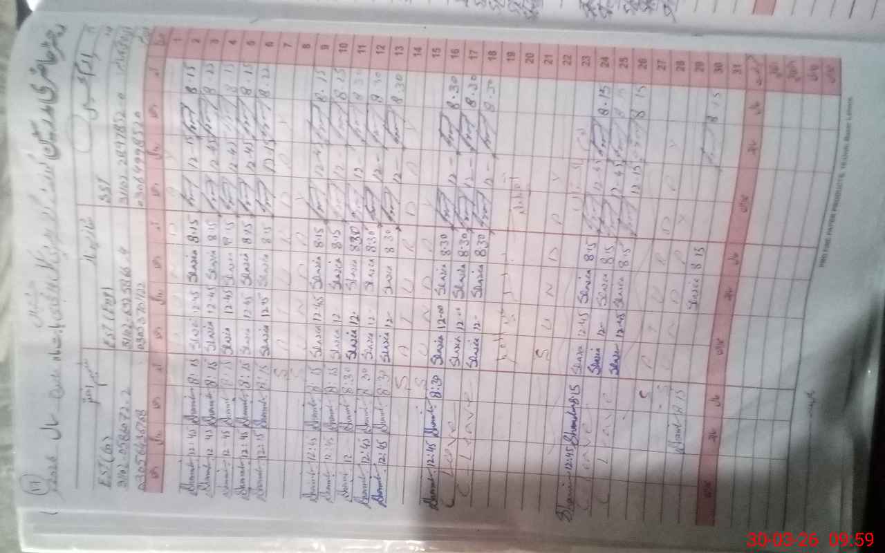 | CNIC | Full Name | Designation | R/C | Absence During Last Calender Month |