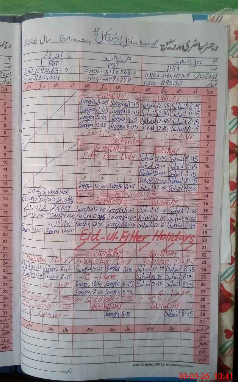 | EMIS Code: 31120555 | Name of School: GMPS 17/G CHISHTIAN | |||