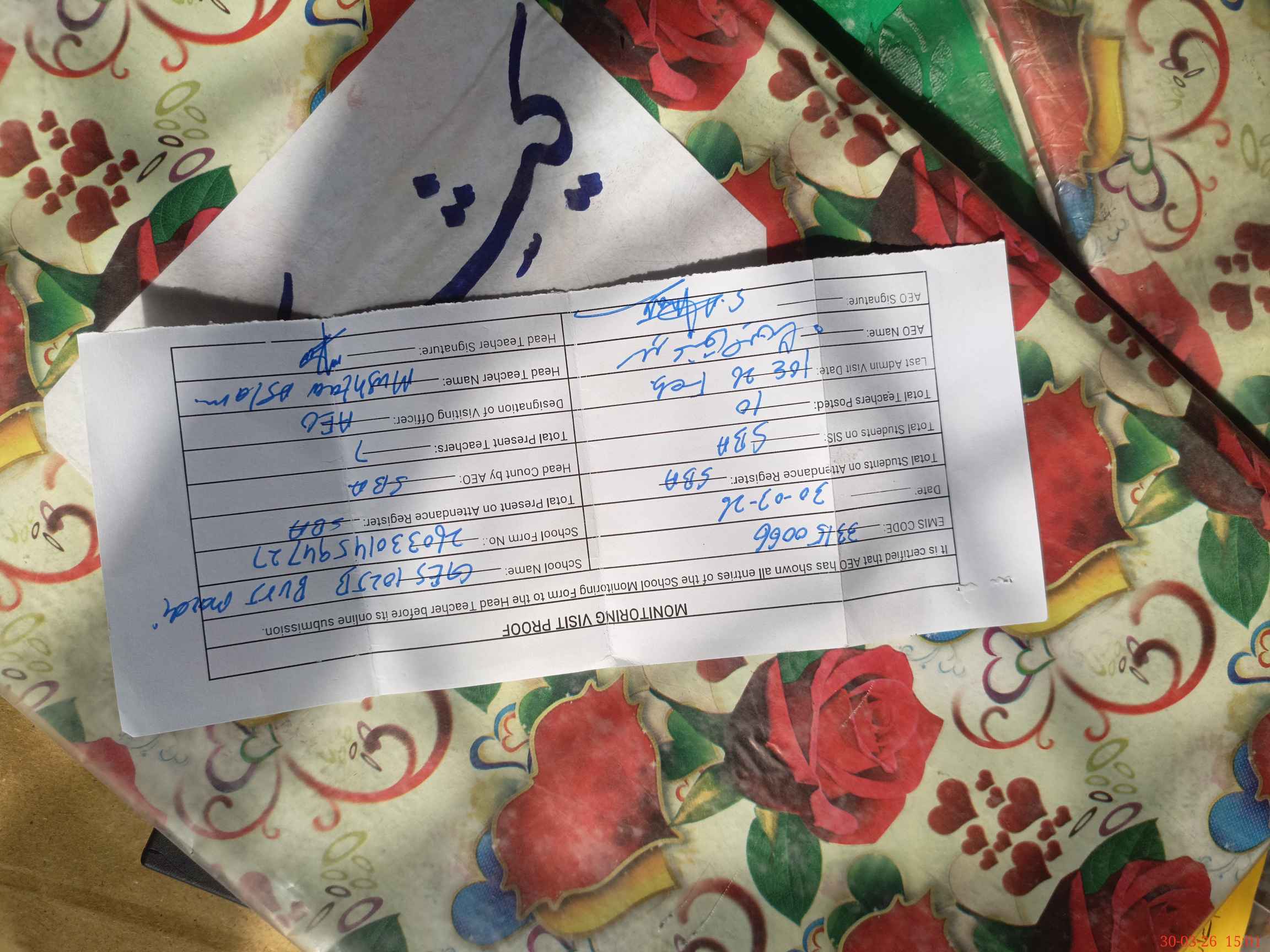 | Certified that this School was Inspected by the Undersigned MEA/DMO Today and the Information Stated Above is as Per Record. | |||||