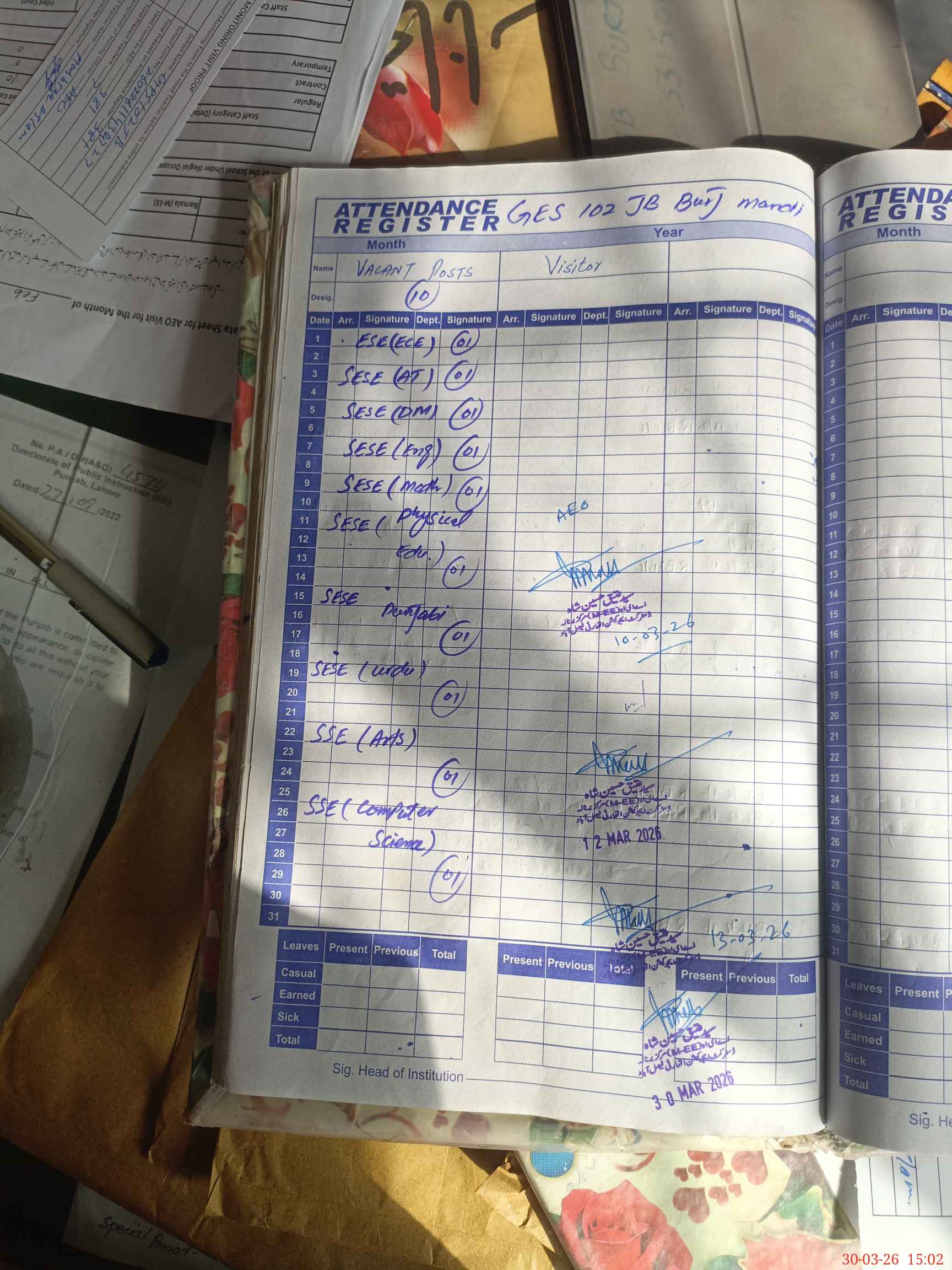 | 33**** | Sy**** Sa**** Ah**** Sh**** | PST Arts | Regular | 0 | 0 | 0 | 0 | 0 | 0 | 0 | 0 | 0 | Exam Duty |