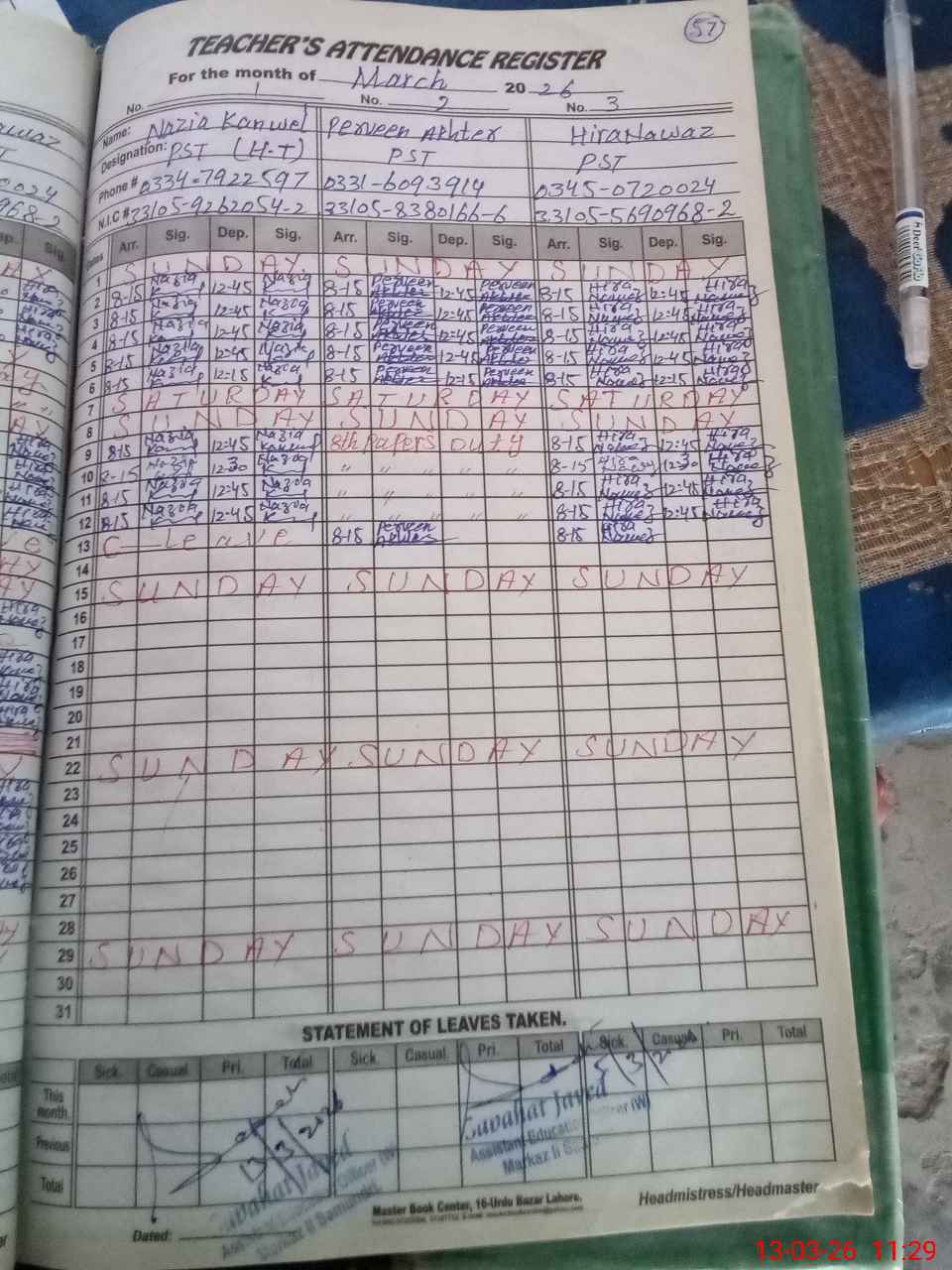 | Name: NA**** KA**** Designation: (School Headmaster's/Headmistress's) PST Phone/Cell Number: 03**** |
