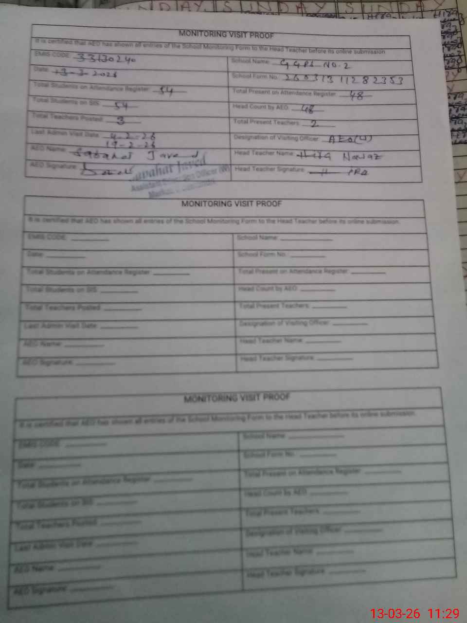 | Certified that this School was Inspected by the Undersigned MEA/DMO Today and the Information Stated Above is as Per Record. | |||||