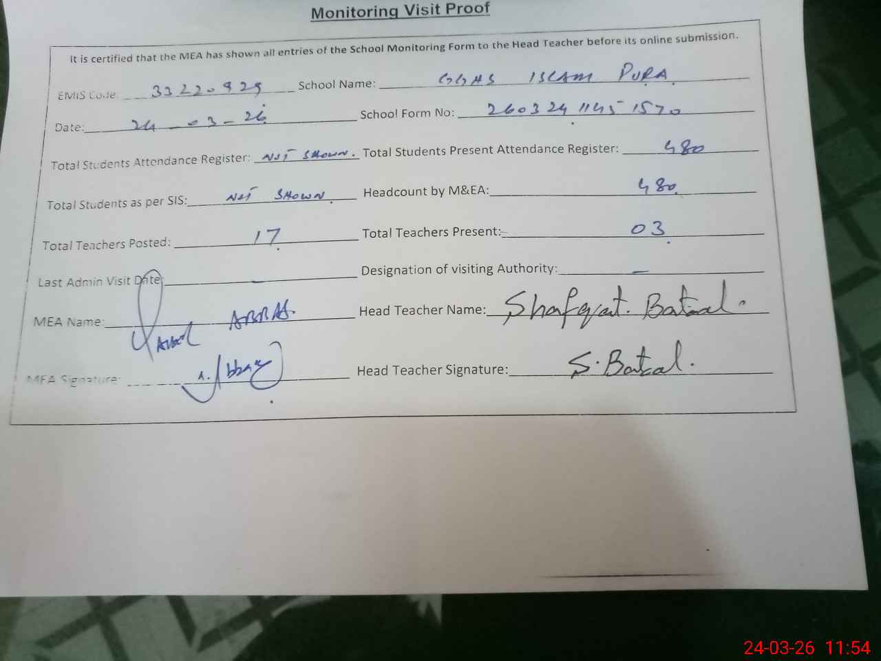 | EMIS Code: 33220929 | Name of School: GGHS ISLAM PURA (Newly upgraded 2025) | |||