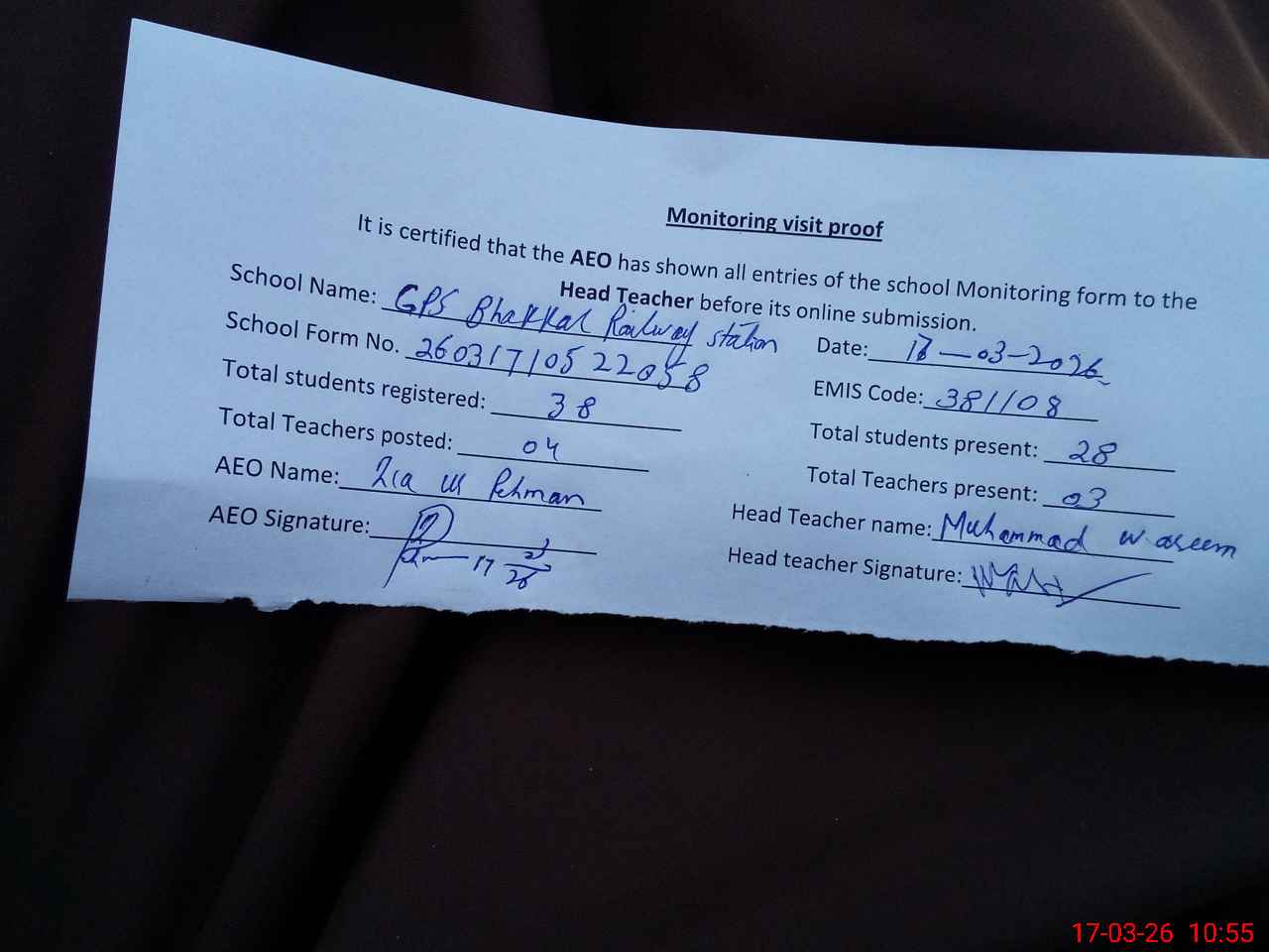 | EMIS Code: 38110108 | Name of School: GPS BHAKKAR RAILWAY STATION | |||