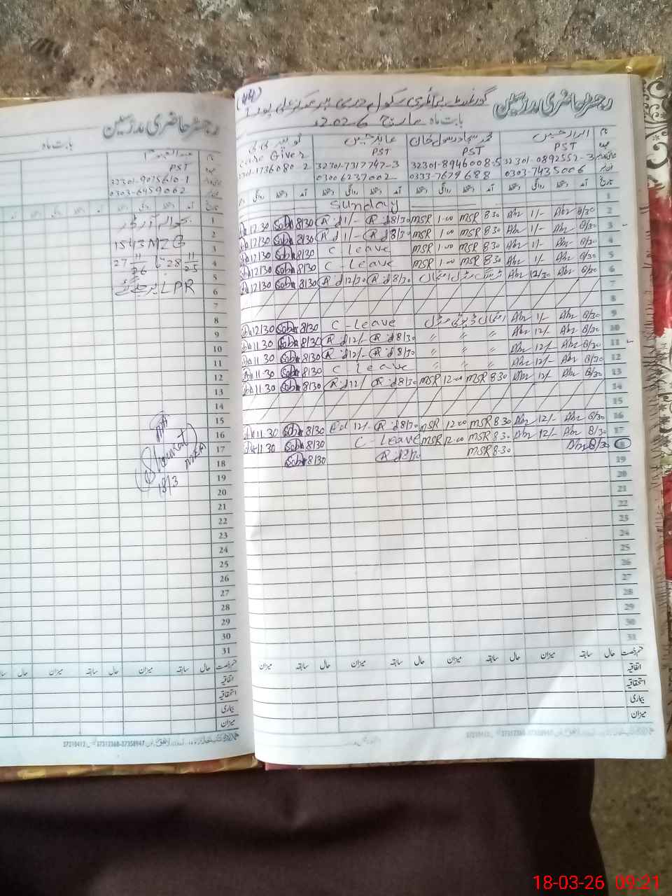 | CNIC | Full Name | Designation | R/C | Absence During Last Calender Month |