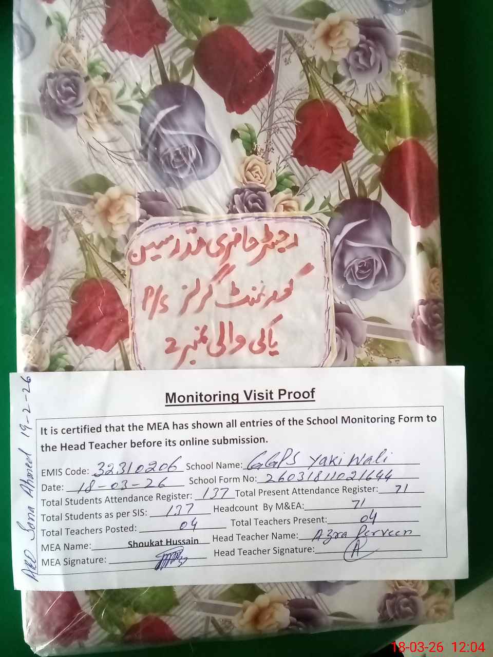 | EMIS Code: 32310206 | Name of School: GGPS YAKI WALI NO. 2 | |||