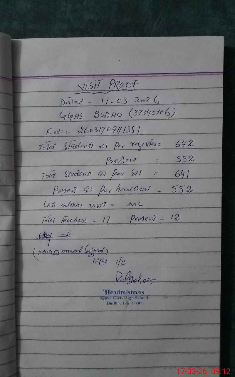 | EMIS Code: 37340106 | Name of School: GGHS BUDHO | |||