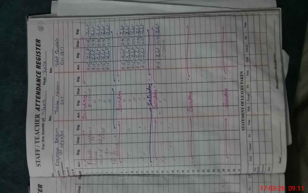 | Attendance Register | Head Teacher | MEA with School | Visit Proof |