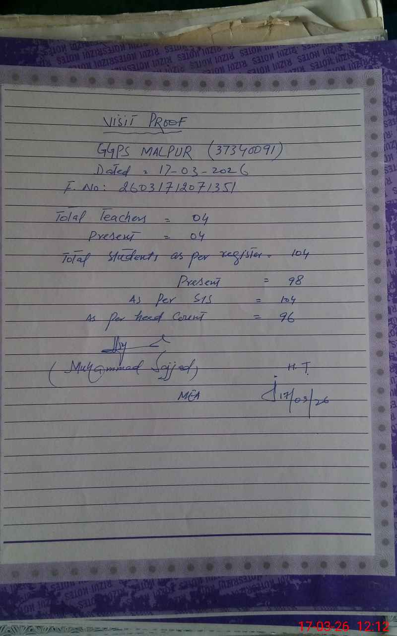 | EMIS Code: 37340091 | Name of School: GGPS MALPUR | |||