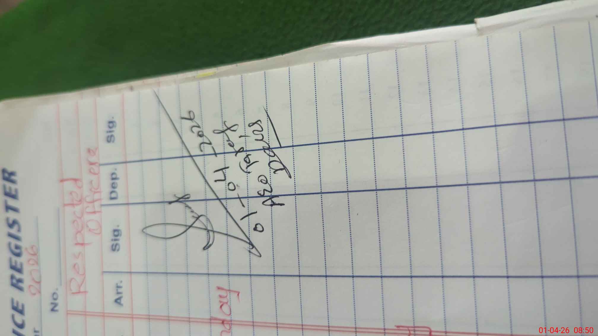 | Monitoring Date: 01-04-2026 | Start Time: 01-04-2026 08:35 AM | End Time: 01-04-2026 08:50 AM | Name of MEA: Su**** Gu**** | |