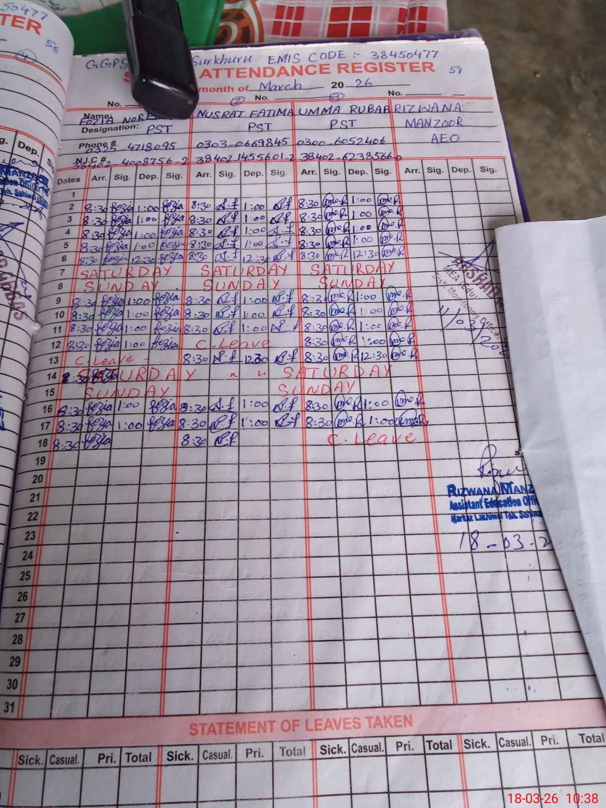 | Name: FO**** NO**** Designation: (School Headmaster's/Headmistress's) PST Phone/Cell Number: 03**** |