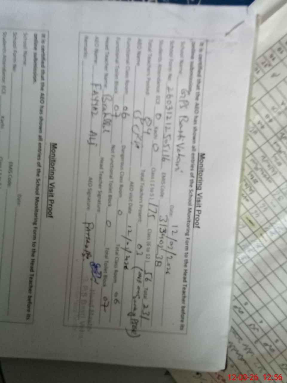 | Attendance Register | Head Teacher | MEA with School | Visit Proof |